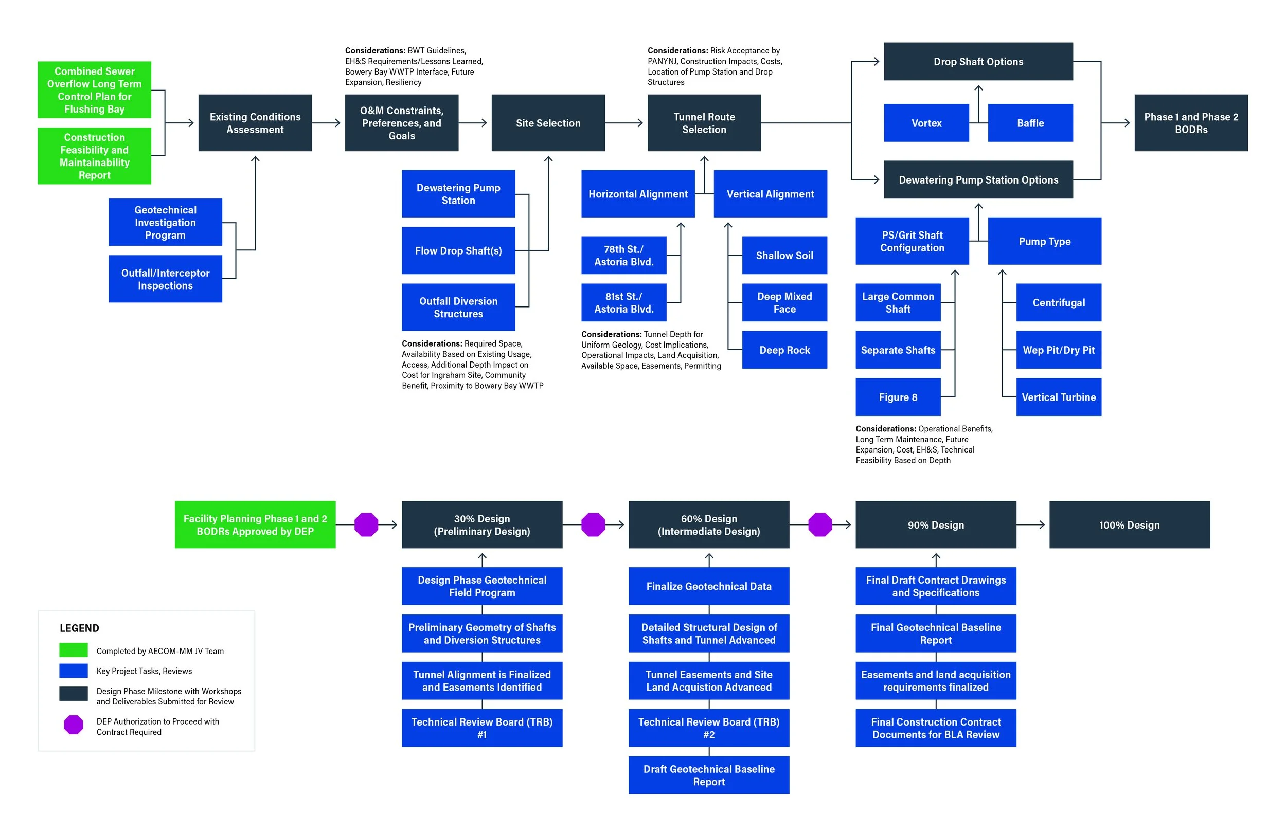 Selection of timelines, task flows, and informational charts from the extended proposal documents